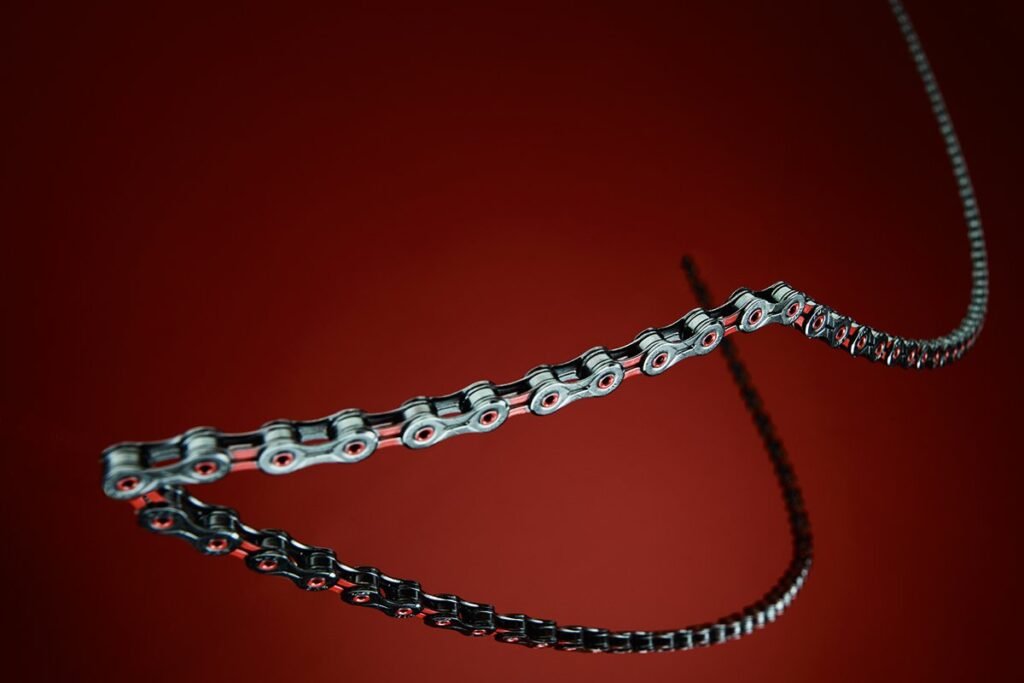 La chaîne n’est pas qu’un composant : elle est le vecteur de votre puissance, le lien mécanique qui connecte vos muscles à la route, en transmettant votre force via le pédalier et les plateaux, le boîtier de pédalier, les axes et roulements, la cassette et le corps de roue libre, jusqu’à la roue arrière.